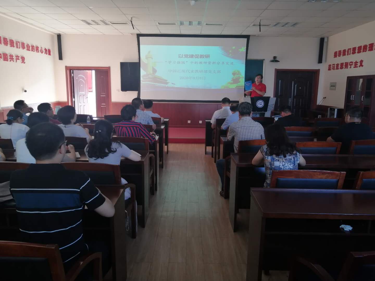 9月8日下午,中国近现代史教研部党支部在J9-227开展“以党建促教研——‘学习强国’中的教研资料分享交流”(第一期)集体学习活动,活动由支部书记宋开金主持,公司党委书记徐波、副经理邵勇与中国近现代史教研部全体教师参加。