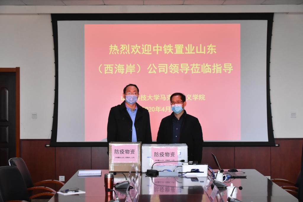 4月15日上午,中铁置业山东(西海岸)公司党委书记、执行董事段国杰,党委副书记、纪委书记、工会主席陈建国,党群工作部部长、人力资源部(党委干部部)部长韩云峰,党群工作部副部长兼工会办公室副主任杨玉炜,党群工作部主管王云龙一行5人来院捐赠口罩、消毒液等防疫物资,公司党委书记徐波代表公司接受了捐赠,经理逄奉辉、副经理邵勇与部分教师代表同客人进行了座谈。
