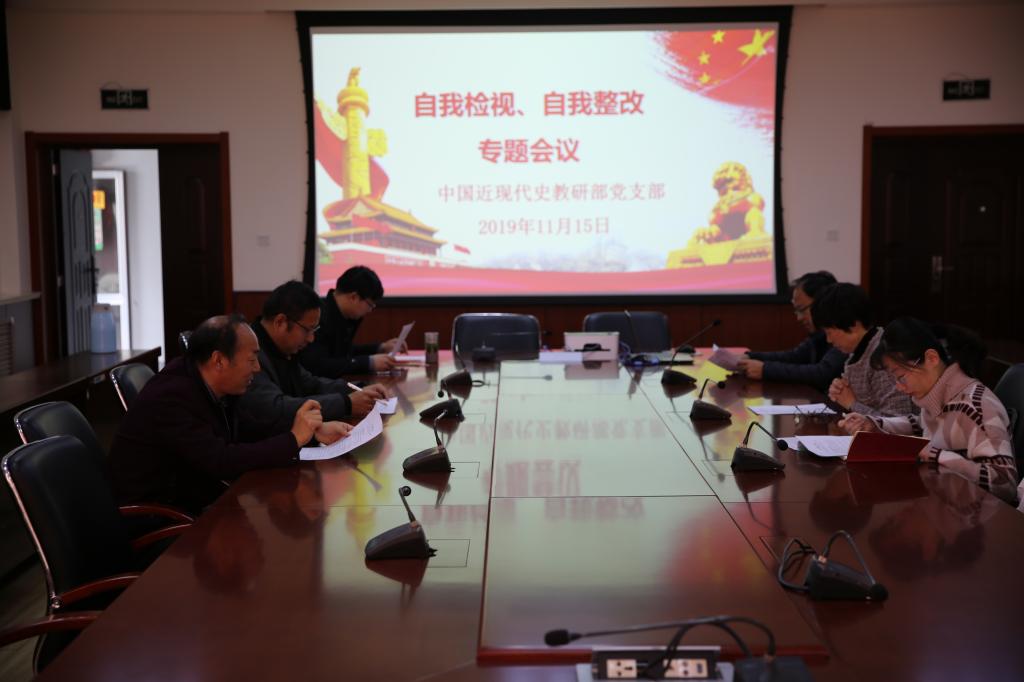11月15日,根据集团“不忘初心、牢记使命”主题教育工作安排,中国近现代史教研部党支部在J9-223会议室召开“自我检视、自我整改”专题会议。会议由支部书记宋开金主持,副经理邵勇与支部全体党员参加。