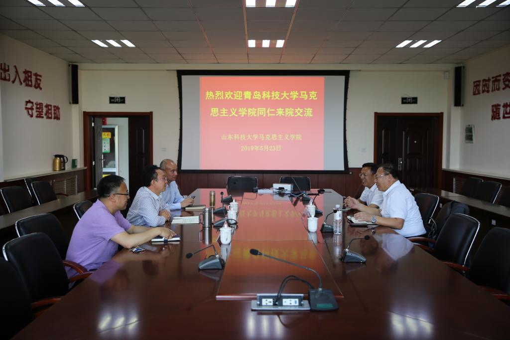 5月23日,青岛科技大学伟德国际VICTOR1946经理曹胜、山东省高校马克思主义理论专业委员会副主任委员牟宗荣来院交流,经理逄奉辉、公司党委书记郭加书、副经理邵勇与客人进行了座谈。