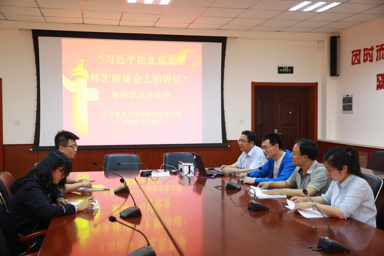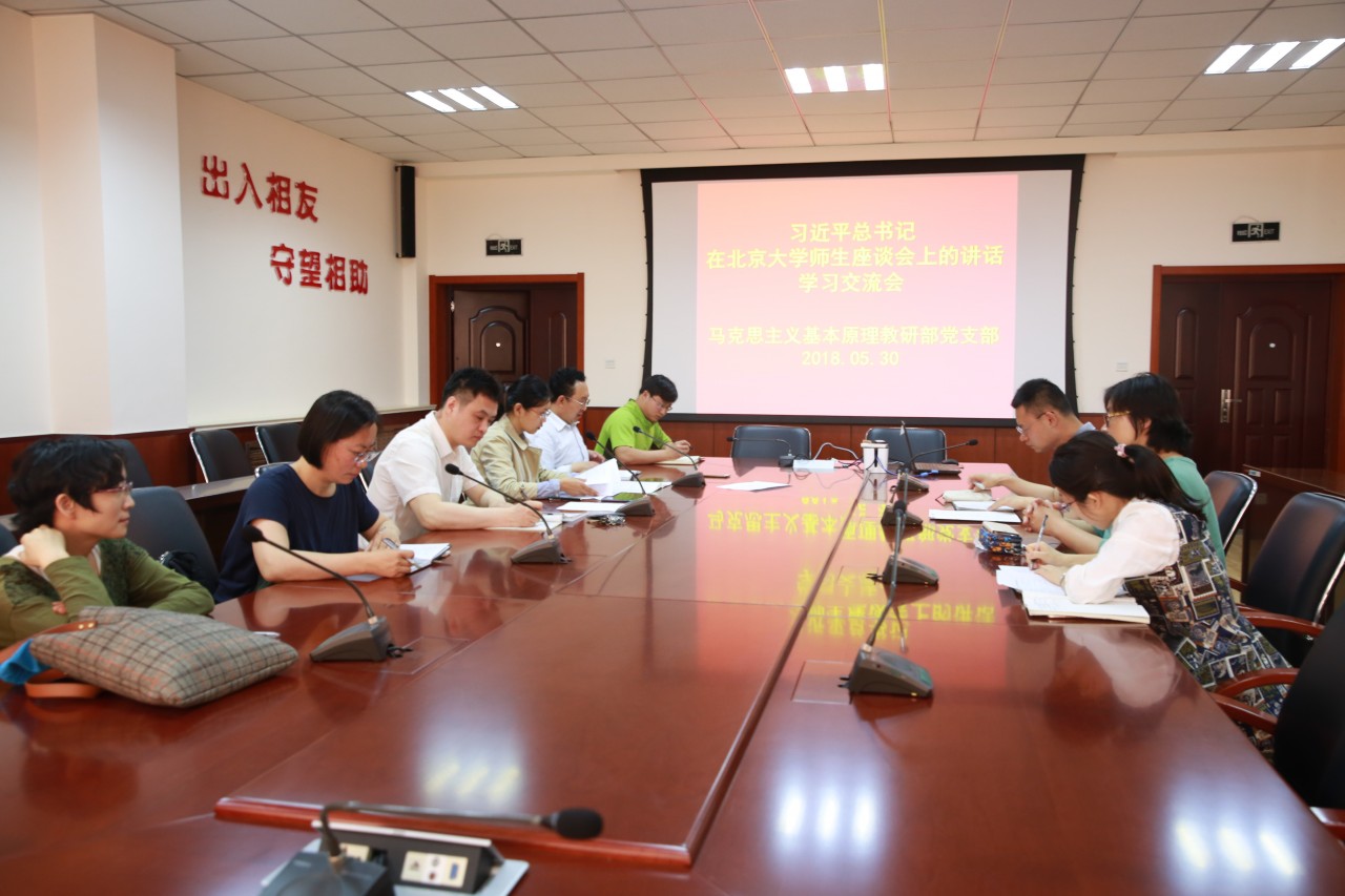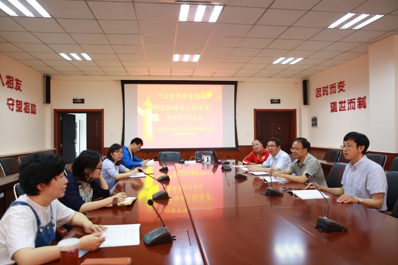 5月30日,中国马克思主义理论教研部党支部召开支部大会,集体学习习近平总书记在北京大学师生座谈会上重要讲话精神。