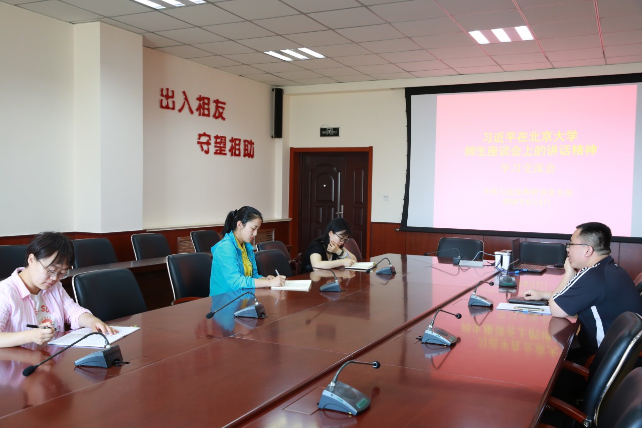 日,道德与法制教研部党支部召开支部大会,集体学习习近平总书记在北京大学师生座谈会上重要讲话精神。