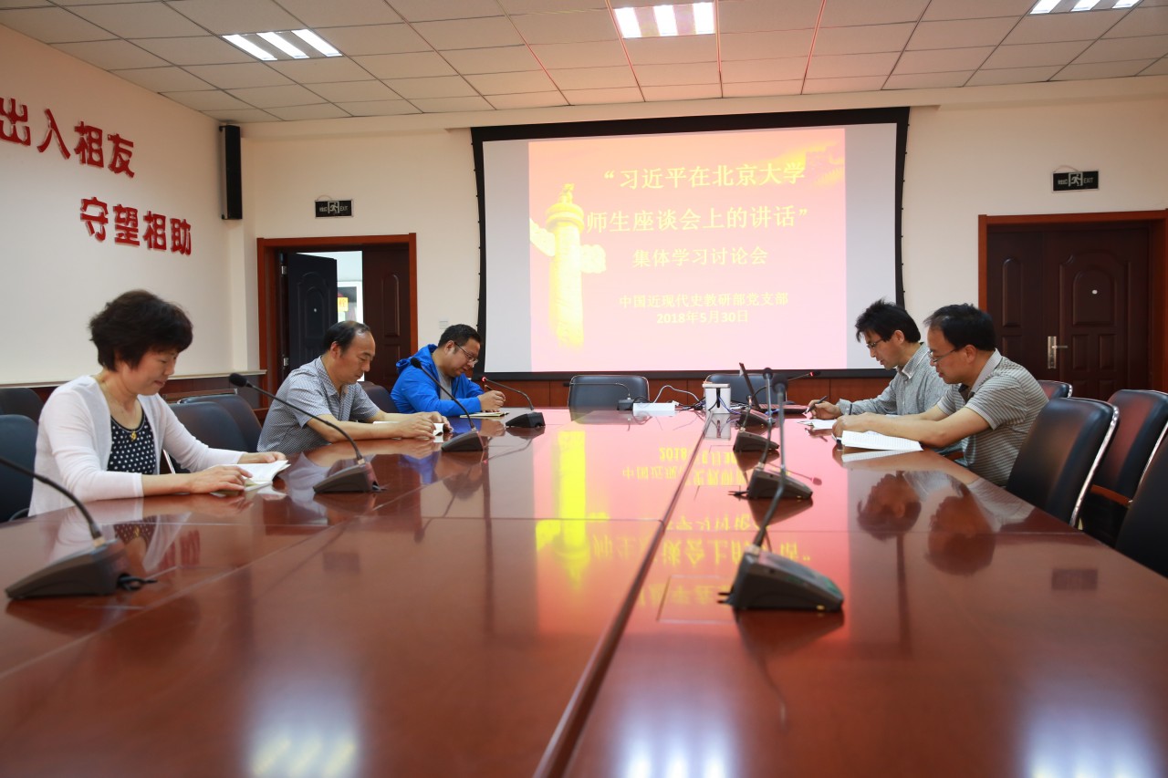 5月30日,中国近现代史教研部党支部召开支部大会,集体学习习近平总书记在北京大学师生座谈会上重要讲话精神。