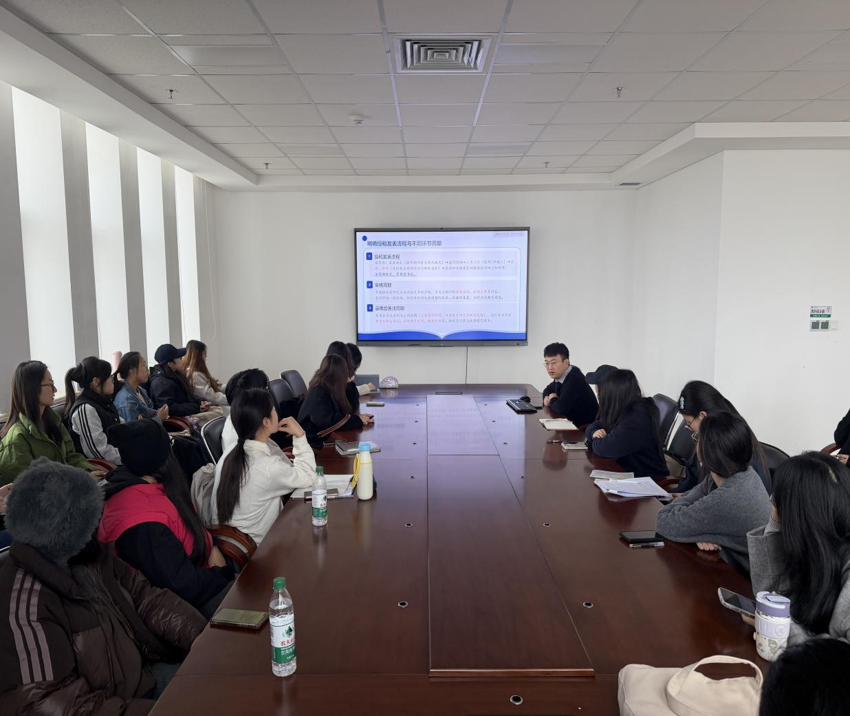 冷晓龙围绕论文写作的周期管理、选题创新、结构布局、投稿策略等多个重要环节展开,结合自身写作与投稿经历,为同学们答疑解惑。同学们现场积极互动,激发了大家的写作兴趣与投稿意愿。