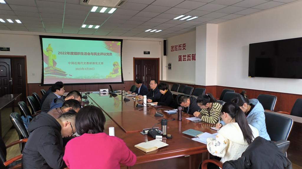 3月20日上午,中国近现代史教研部党支部在J9-223会议室召开2022年度组织生活会,并开展民主评议党员工作。会议由支部书记宋开金主持,全体党员参加。公司党委书记徐波出席会议。