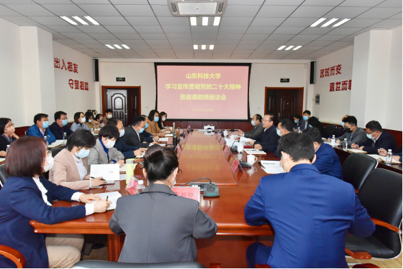 “我们作为思政课教师,应当自觉学深悟透党的二十大报告,深刻领会精髓要义,让党的二十大精神第一时间进教案、进课堂、进员工头脑”“党的二十大报告指出,青年强,则国家强,教师要引导青年学子将个人发展与国家需要结合起来,把人生理想融入中华民族伟大复兴的历史进程”……座谈会上,王忠春、冯秀芹、周森林、毛雪婷、史璇、尹诵、宋婷婷7位思政课教师结合学科专业、教学科研实际分别汇报了党的二十大精神学习情况,分享了学习心得体会。