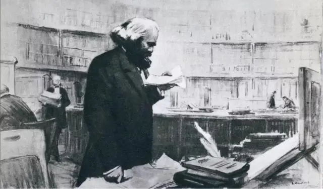 马克思在英国博物馆查阅资料(素描)