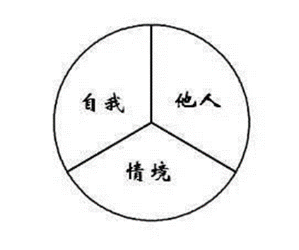 美国当代著名心理治疗师萨提亚(Virginia Satir)提出了沟通的三个要素:自我、他人、情境。